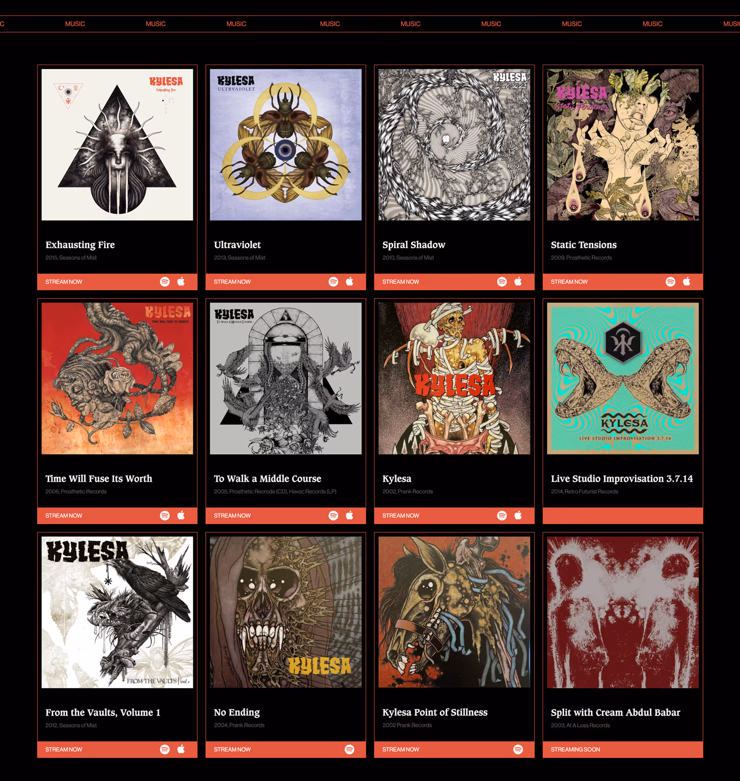 We helped the band Kylesa create a new web presence to celebrate their storied career in metal. Creating a new platform to share all their content and merch with fans. Built with Webflow.